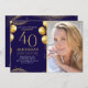 Celebrate in style with our luxurious birthday invitation featuring gold glitter details, elegant balloons, and eye-catching gold numbers to highlight the age. The back design includes a customizable photo, adding a unique and personal touch to your special day. Perfect for women's milestone birthdays, this invitation is ideal for sophisticated and glamorous celebrations. Easily personalize the details and create a spectacular keepsake for your event!