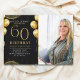 Celebrate in style with our luxurious birthday invitation featuring gold glitter details, elegant balloons, and eye-catching gold numbers to highlight the age. The back design includes a customizable photo, adding a unique and personal touch to your special day. Perfect for women's milestone birthdays, this invitation is ideal for sophisticated and glamorous celebrations. Easily personalize the details and create a spectacular keepsake for your event!