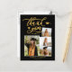 Elegant Gold Glitter Script Modern Black 4 Photo Collage Graduation Thank You Postcard. Give Wow 'Thanks' to your family and friends with this beautiful thank you card. All the texts are pre-arranged for you to personalise easily and quickly with your own words.