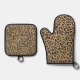 Elegant Gold Glitter Black Leopard Print Oven Mitt & Pot Holder Set