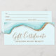 Elegant Gold Glitter Blue Marble Agate Gift Certificate. Perfect for a beauty salon, hair stylist, makeup artist, or cosmetologist.