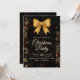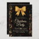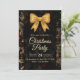 Elegant Gold Glitter Bow Dark Christmas Party Invitation