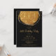 A faux gold foil abstract circle with radiating lines, on a black background, with a sprinkle of glitter. Sophisticated and glamourous. A chic 50th birthday party invite. Order it in print, in digital form, or both print and digital. Customise for any age!