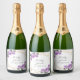 Elegant Gold Glitter Geo Purple Floral Wedding Sparkling Wine Label