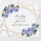 Elegant Gold Glitter Geometric Blue Floral Wedding Sparkling Wine Label