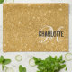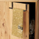 Elegant gold glitter kitchen towel with a white script monogram and a black name. Personalise with your initial and name.