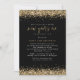 Elegant Gold Glitter New Years Eve Black. A glam faux glitter border is on each side top and bottom, and New Year's Eve is in a set lowercase handwriting style script. Easily personalise the text to your own details. You can also change the text and background colours via the customise further option if you wish.