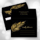 Glamourous black envelope with faux gold glitter palm fronds on the interior and the front plus your return address in chic lettering on the back flap. A palm frond and "kindly deliver to" on the front with 3 address lines makes addressing easy {can be deleted.} CHANGE the wording, the fonts, font colours, even the envelope colour. Designs are flat printed illustrations/graphics - NOT ACTUAL GOLD GLITTER. MATCHING party invitations, save the date cards, rsvp cards and more items in our store --> http://bit.ly/2JQANWZ <--