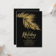 Glamourous faux gold glitter palm frond on black with your holiday Christmas party details in chic lettering on - INSTANT DOWNLOAD or PRINTED - invitations. MATCHING items in our collection.