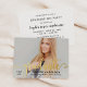 Celebrate your graduate with this elegant landscape graduation party invitation featuring "Graduate" in gold foil calligraphy with graceful swash tails overlaid on a full-bleed senior portrait. The back presents "Graduation Party" event details in black script and serif typography on white. All text is fully customizable, including the graduate's name, school, class year, and event details.