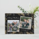 Send this elegant gold and black Christmas photo card to your loved ones this holiday season. The design features 2 square photos on a black background accented with gold and white greenery around the border. Photography © Storytree Studios, Stanford, CA