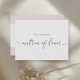 Custom-designed "Will You Be My Matron of Honour" bridal party proposal card featuring elegant hand calligraphy on the front, pink colour block with gold heart design on the back.