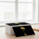 This sophisticated profile card features a luxury minimalist design with double gold hearts on a sleek black starry background. The front displays the romantic "My love" script and personalized "J&E" initials, while the back remains clean with a small matching heart accent. Printed on premium Signature UV Matte paper for a thick, protective, and professional finish. Perfect for romantic notes, wedding favors, or personal branding.