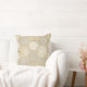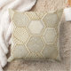 A seamless geometric pattern throw pillow featuring a refined grid of hexagonal shapes outlined in metallic gold. Each hexagon contains intricate designs such as parallel lines, cross-hatching, and abstract geometric motifs. The background blends soft cream and beige tones with a subtle marble-like texture, creating a sophisticated, luxurious aesthetic.