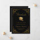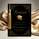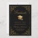 Send your family and friends this elegant graduation announcement card to wow them. This design features faux gold grad cap and script on a black background framed with a faux gold filigree botanical border. Personalise with your own details, name, school and year. Designed by Susan Coffey.