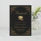 Elegant Gold Ivy Grad Cap Black Graduation Announcement