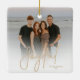 Elegant Gold JOYFUL Script Photo Christmas Ceramic Ornament