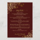 Elegant Gold Lace Frills Auburn Brown Wedding Menu
