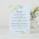 This beautiful wedding menu is simple, elegant, sophisticated and stylish. It features a beautiful powder blue coloured design with lacy gold script calligraphy and delicate golden curls and swirls in the corners. The back is a beautiful marbled gold colour.