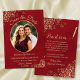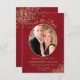 Elegant Gold Lace & Oval Photo Marbled Red Wedding Save The Date