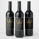 Elegant Gold Laurel Wreath and Anchor Black Wine Label