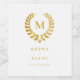 Elegant Gold Laurel Wreath Monogram White Wine Label