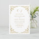 This modern wedding invitation features a faux gold leaf frame to border your wedding details including script monograms to personalise in faux gold typography. Best of wishes for your wedding and marriage! Designed by Susan Coffey.