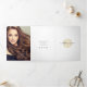 An elegant motif of a gold leaf pattern in a circular shape is combined with your name or business name on this professional tri-fold brochure. Update the customisable text to fit your brand, and personalise the details throughout the brochure for your own usage. These 5x7 brochures are the perfect size to display your price lists and menu of services, or describe your product line. A great marketing piece to hand out to potential clients to quickly introduce your business. Please contact the designer for help with special typesetting or layout variations. Art and design © 1201AM Design Studio | www.1201am.com
