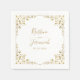 These custom paper napkins will add a touch of elegance to your wedding reception place settings. This chic design template features a faux gold leaf border with your names in modern faux gold script and wedding date to personalise. Please check out our I Love Weddingz shop to find more selections in this collection. Designed by artist Susan Coffey.