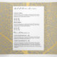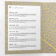An elegant type treatment for your name or business name is centred on top of an organic pattern of a leaf in a faux gold effect on this professional tri-fold brochure. Update the customisable text to fit your brand, and personalise the details throughout the brochure for your own usage. These 5x7 brochures are the perfect size to display your price lists and menu of services, or describe your product line. A great marketing piece to hand out to potential clients to quickly introduce your business. Please contact the designer for help with special typesetting or layout variations. Art and design © 1201AM Design Studio | www.1201am.com