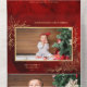 Showcase your special holiday family photo with this elegant design featuring delicate line drawn gold Christmas flowers and foliage against a deep ruby red artisan background. Also includes a faux hammered gold border around the one-photo template and editable text fields. The panels feature a blank element, additional text fields and tearaway photo template.