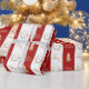 Modern personalised Christmas pattern in faux gold, blue and white.