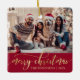 Elegant Gold Merry Christmas Script Photo Red Ceramic Ornament