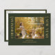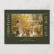 Elegant custom gold typography Merry Christmas and Happy New Year greetings, single photo template and text fields on chic sage green background. Back features additional text fields.