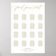 Elegant Gold Calligraphy Wedding Seating Chart: This wedding seating chart has up to 14 tables of 10 guests plus a header table. It features an elegant gold modern calligraphy script at the top. Enter your guests names and your table numbers. You can delete and move around tables.