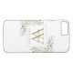 Elegant watercolor floral greenery monogram name iPhone 8/7 case featuring a gold monogram initial. Designed by Thisisnotme©