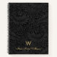Elegant Gold Monogram Name Black Floral Pattern Notebook