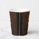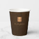 Luxury monogrammed paper cups with a dark brown leather look background and a faux gold copper metallic brushed square with elegant script signature name and monogram initials. ++++++++++++++ Easy to personalise creating your own logo with your business or personal initials and name. +++++++++++++ Could be an elegant personalised business corporate disposable drinkware for a networking event or for office guests or a modern branding essential for your office bar.