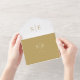 This chic minimalist all in one gold wedding invitation can be personalised with your monogram initials and wedding day information. The invitation includes a perforated RSVP card with your wedding website QR code. Designed by Thisisnotme©