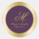 Elegant Gold Monogram Script Plum Purple Wedding Classic Round Sticker