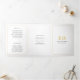 Elegant brochure with faux gold borders over white. The front has your monogram in faux gold along with your business name and service. The back panel has your contact information and the inner fold panel has a two templates for info. The inside has multiple templates for information about your business on the outer panels and a price list in the middle panel. This simple and professional design is great for a makeup artist, hair stylist, beauty salon or any woman owned business.