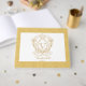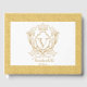 This pretty wedding design is called Elegant Gold Monogram Wedding. The background is a gold herringbone glitter pattern. In the centre of many pieces there is a white inset for your text with the gold creating a frame. At the top of the invitation, there is a gold crest with a place for your initials or monogram. This set has invitations, save the date cards, response cards, thank you cards, table number cards, wine labels, and many more day-of wedding stationery pieces, favours, and gifts available. All elements are printed on our high quality products, they do not include any real gold, jewels, embossing, or other textile elements. All designs are copyright Noteable Expressions, Inc. All rights reserved. Please email me at Nique@NoteableInvitations.com for matching designs, products, colour matching or with custom requests.