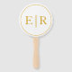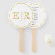 Elegant wedding program hand fans with your monogram in faux gold and your details in italics over a white background. These hand fans will provide your guests with the order of service and are perfect for an outdoor wedding.