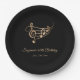 This editable elegant birthday paper plate features a wavy stave with music notes and a treble clef in faux gold on a black background, complemented by modern script typography. Perfect for adult birthday parties, musical events and music lovers. Customise it with your own text and make use of the editing tool to adjust the font size and placement. Should you require any help with customisation, please feel free to message us on Zazzle.
