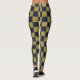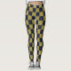 Elegant Gold & Navy Blue Chequered Pattern Leggings