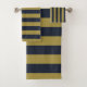 Elegant Gold & Navy Blue Vertical Stripes Bath Towel Set