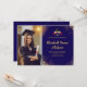 Elegant Gold & Black Graduation Invitations & Announcements | Modern Dark Blue Design with Laurel Wreath, Grad Cap & Diploma | Customisable Photo, School, Honours & Future Plans