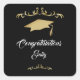 Black Elegant Gold Ornament Congratulations Graduate Graduation Square Sticker. Graduation stickers with graduation cap, trendy script and gold ornaments on a black background. Congratulations and the name of the graduate - personalise with your name.