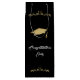 Black Elegant Gold Ornament Congratulations Graduate Graduation Wine Gift Bag. Personalised wine gift bag with graduation cap, trendy script and gold ornaments on a black background. Congratulations and the name of the graduate - personalise with your name.