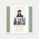 Pastel Green Elegant Gold Ornament Graduation Party 2 Photo Napkins. An elegant personalised graduation celebration napkins with a trendy script and two gold ornaments. Add your name and 2 photos - you can use then and now photos of the graduate.